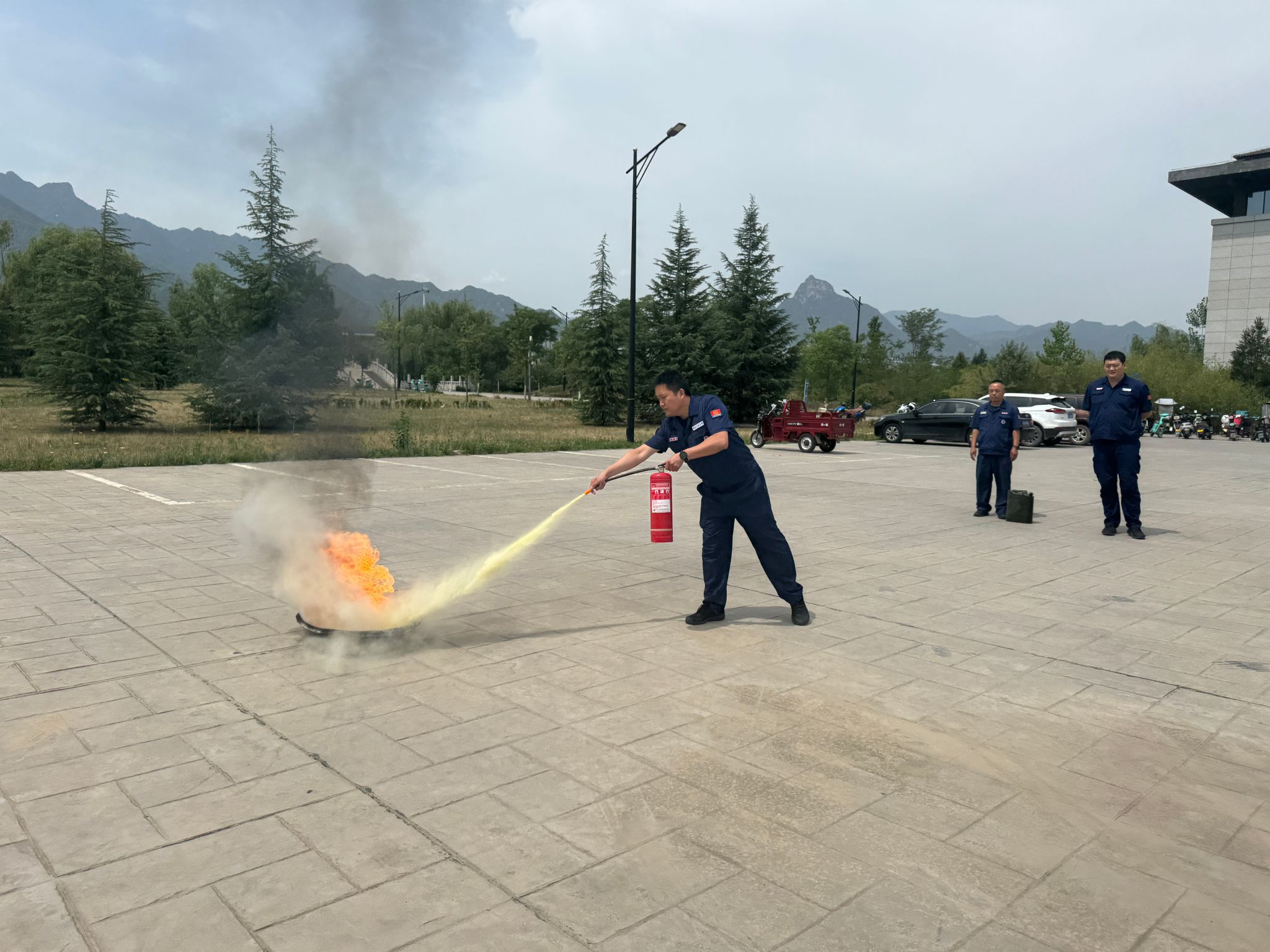 在消防技能现场教学环节,胡涛就灭火器的正确使用方法和注意事项进行了现场讲解和操作示范,并安排大家分组进行了实际操作。