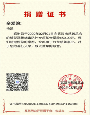 一位同学向武汉伸出爱心之手