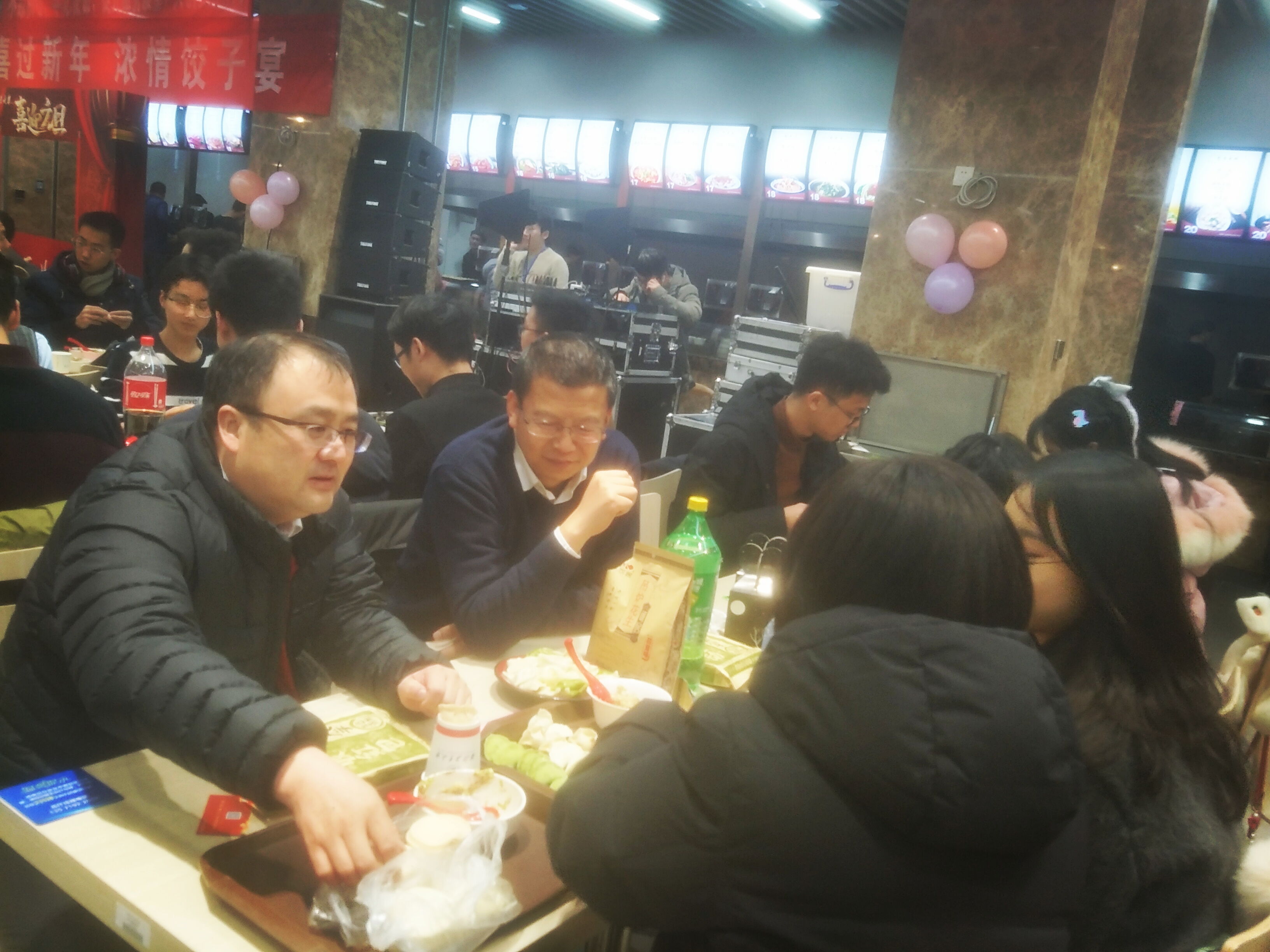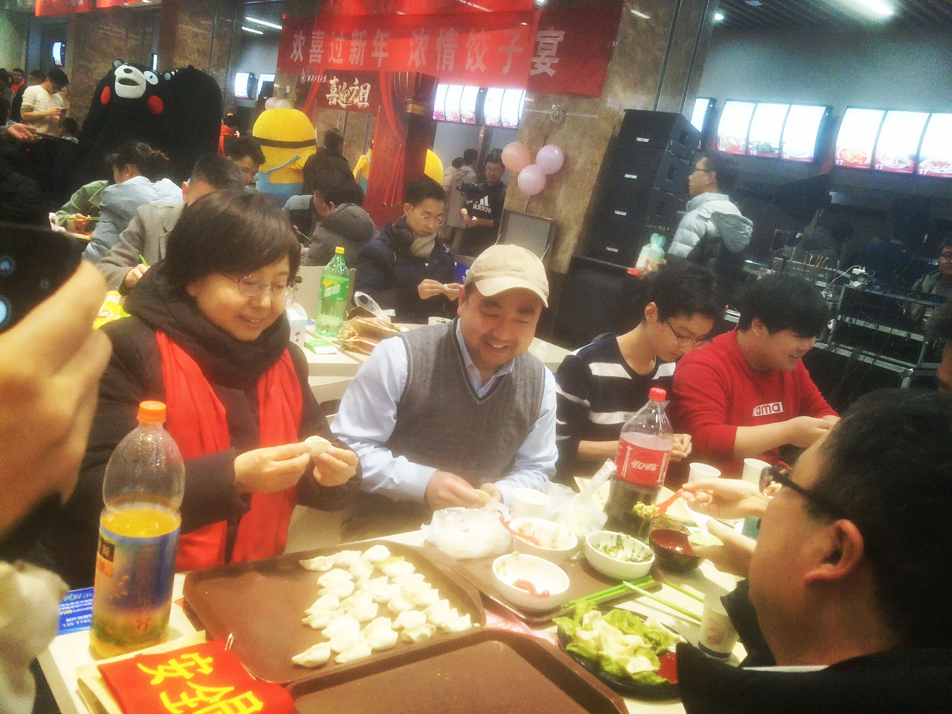下午四点左右的员工第一餐厅已是人山人海,人满为患。员工们在安全员的引导下早早地进入餐厅,感受新年氛围,着手包饺子。随后张艳宁、陈洪亮、郑江滨、王犇、黎昞、齐春晓老师先后加入包饺子队伍。在这拥挤的食堂中,来自不同公司,不同民族乃至不同国家的老师和同学们各自展现着其包饺子的工艺, 此时此刻,老师与同学们之间的距离再次拉近,欢声笑语,在热闹的气氛中感受着节日带来的快乐。