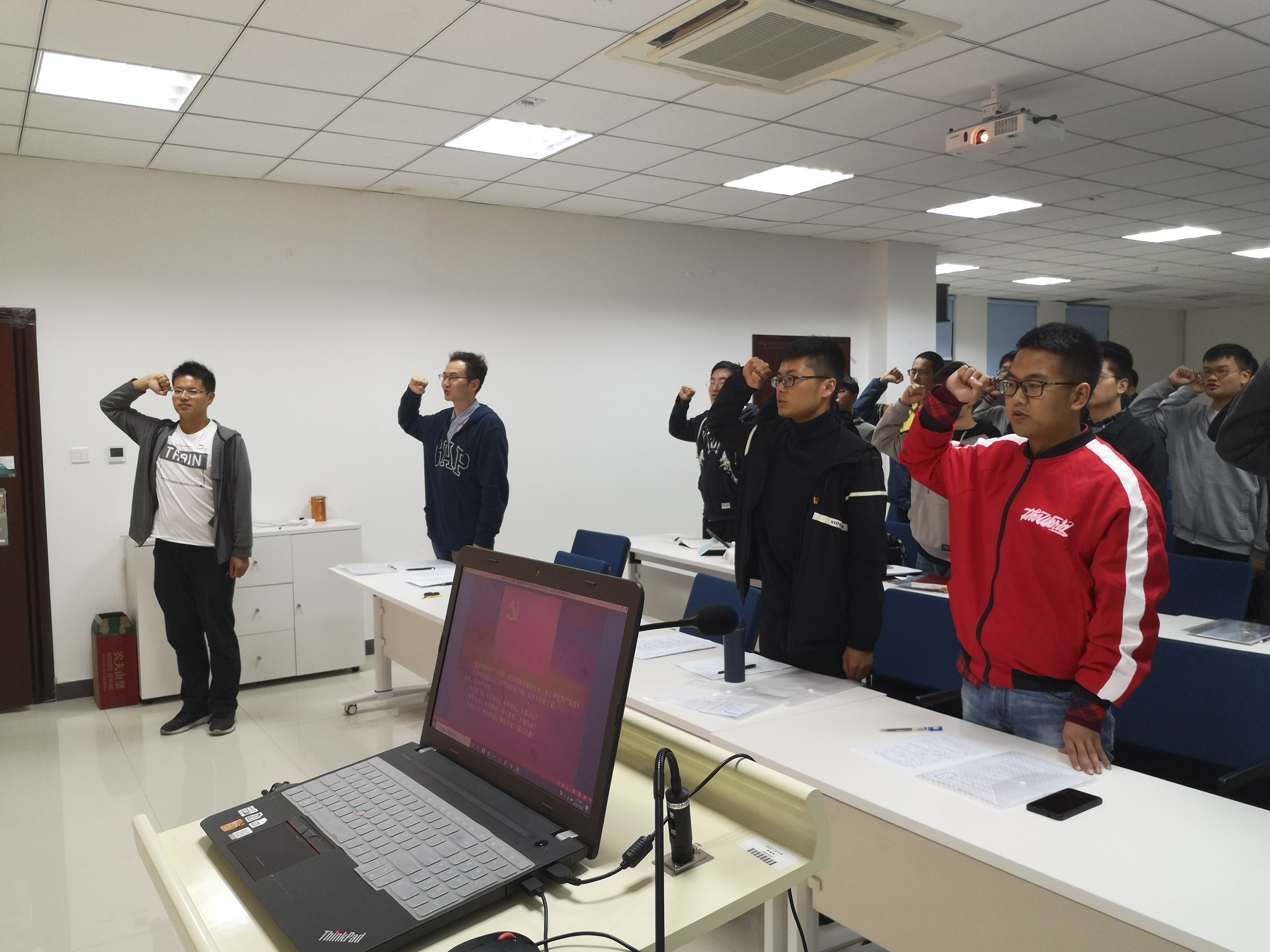 2019年10月25日开展了“不忘初心、牢记使命”主题教育之青年员工党员庆祝中华人民共和国成立70周年主题党日活动。主题教育活动中,支部副书记梁奕桢同志在传达了党中央和公司、公司党委关于开展“不忘初心、牢记使命”主题教育的要求,阐述了主题教育活动的意义后便组织观看开国大典彩色记录影片,而后探寻新中国成立70周年以来的辉煌巨变,探讨青年员工党员身上所肩负的历史使命。主题学习讨论后,支部书记胡轩豪同志带领全体党员进行新时代青年员工党员主题宣誓。