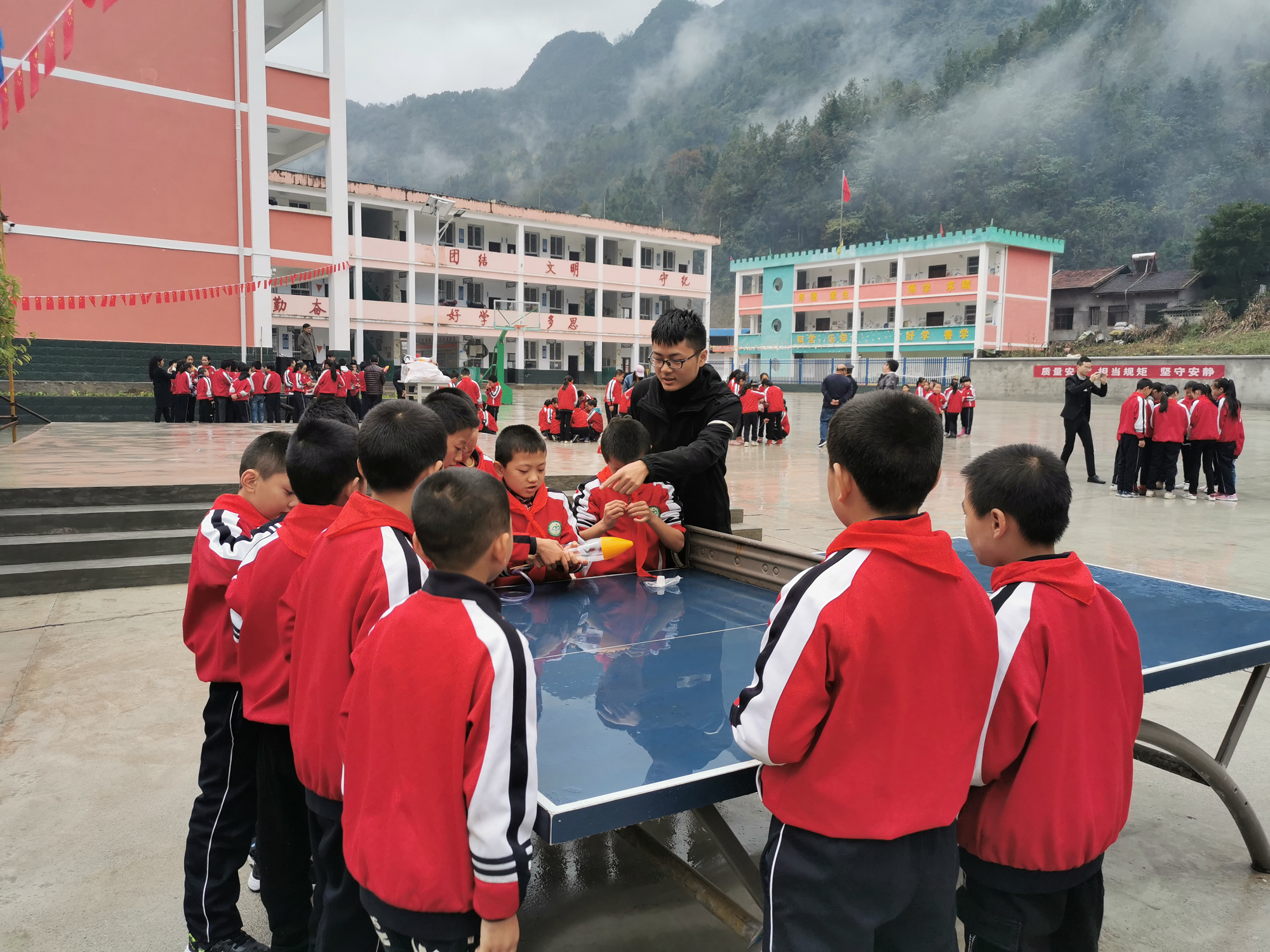 2019年10月21-22日,世界杯官方网站入口2026研究生第三党支部党员代表李臻、吴瑶瑶等同志随公司党委师生党员代表等共计12人,来到汉中市镇巴县巴山镇中心小学开展主题为“软心筑梦、情暖巴山”的志愿科普教育扶贫活动。活动主要包括科普知识讲座、放飞水火箭和原理介绍、舞蹈机器人表演以及飞机模型的拼装和放飞等内容。