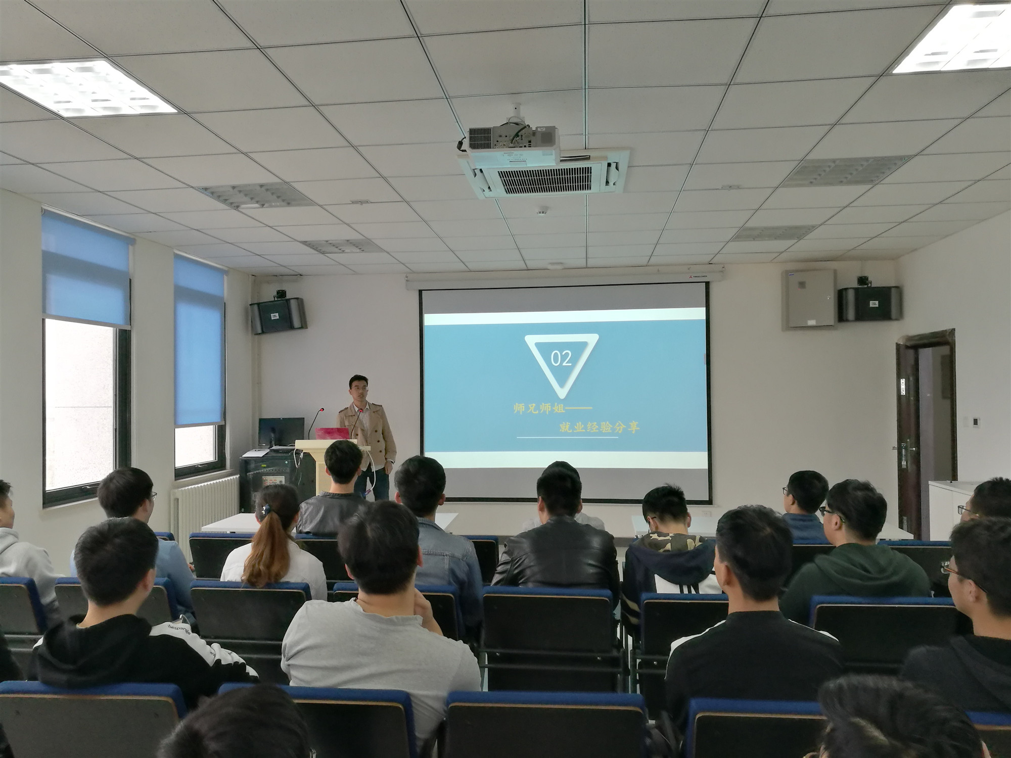 接下来是2019届毕业研究生的经验分享环节。公司邀请到了今年签约腾讯、阿里、华为等知名公司的毕业生前来分享就业的经验。在经验分享过程中,签约北京还是科技有限公司的2019届毕业研究生肖金霸为大家分享了自己在就业过程中的经验,希望大家都能打好坚实的技术基础,为顺利签约做好铺垫;签约浙商银行的卜迪说到:“研究生在学习科研中要善于发现问题,同时还要积极解决问题。只有在发现问题并努力解决问题后,自己的能力才会得到更好地提高。”签约阿里巴巴的张仁宇曾在美团、腾讯等知名公司实习,他为大家分享了自己的实习经验和投递简历的技巧,在座的同学们纷纷表示很为受用;签约华为的王文杰询问到师弟师妹们目前的实习情况,并为大家分享了实习与签约之间的联系,希望大家都能把握好实习的机会;同样签约华为的朱皓谈到研究生要尽早对自己的未来进行规划,同时要树立好自己的信念与信心,并努力朝自己的规划目标去努力。会后,2017级、2018级研究生与师兄们积极沟通交流,关于实习的疑惑、就业方向的选择、就业单位的选择方面都进行了深入的交流。