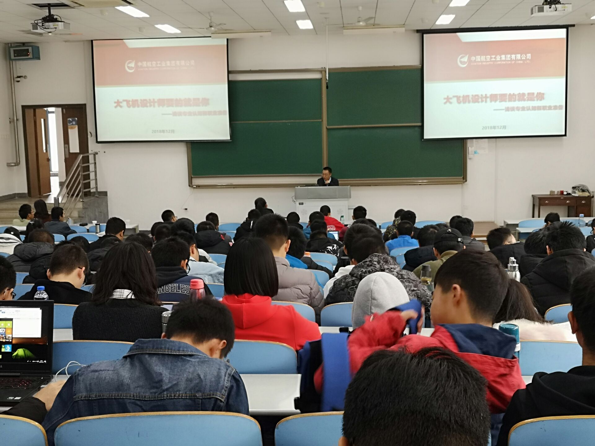 为增强同学们的航空报国情怀,加深同学们对软件在航空领域发挥作用的认识,11月24日上午,在长安校区教西D101教室,软件与微电子公司邀请了中国航空工业集团公司第一飞机设计研究院信息系统研究所所长、军委装备总工程师张登峰为2018级本科生做了题为“大飞机设计师要的就是你”的学科专业认知与职业准备授课。出席本次讲座的有软件与微电子公司副经理郑江滨教授、教学秘书蔡康英老师、教师马春燕、2018级辅导员樊超。