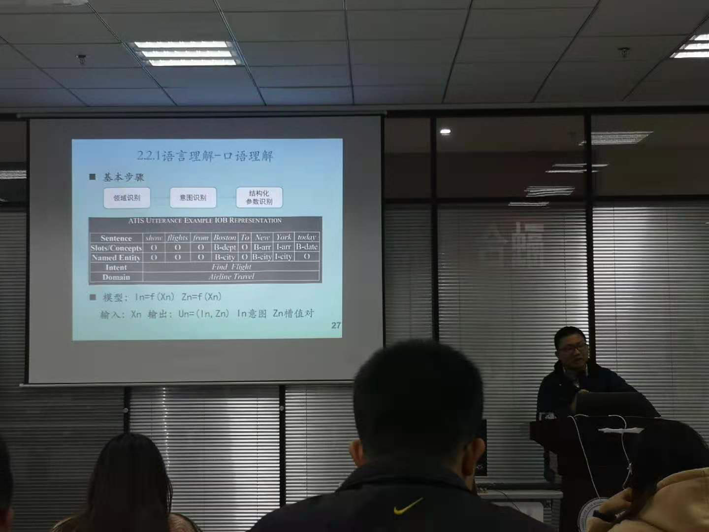 接下来的语言理解与响应,刘老师通过语义框架、多种分类识别到相应生成,让同学们明白了智能语音助手如何拆分理解我们的对话含义并进行对话决策。