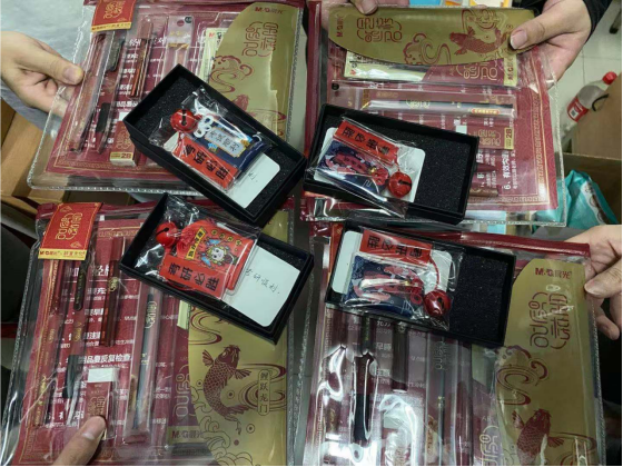 考研文具套装包含所需的各种考试文具以及透明文件袋,便利员工带进考场,装好自己的身份证、准考证等相关证件。工欲善其事,必先利其器。为考研员工准备好全套的文具,让大家无后顾之忧。同时,考研祝福小挂件上面写着“旗开得胜、逢考必过、考研必胜、金榜题名、成功上岸”等祝福语,包含着对考研同学殷切的希望和祝福。希望大家能够在最后的冲刺日子里,保持良好的心态,沉着冷静,轻装上阵。