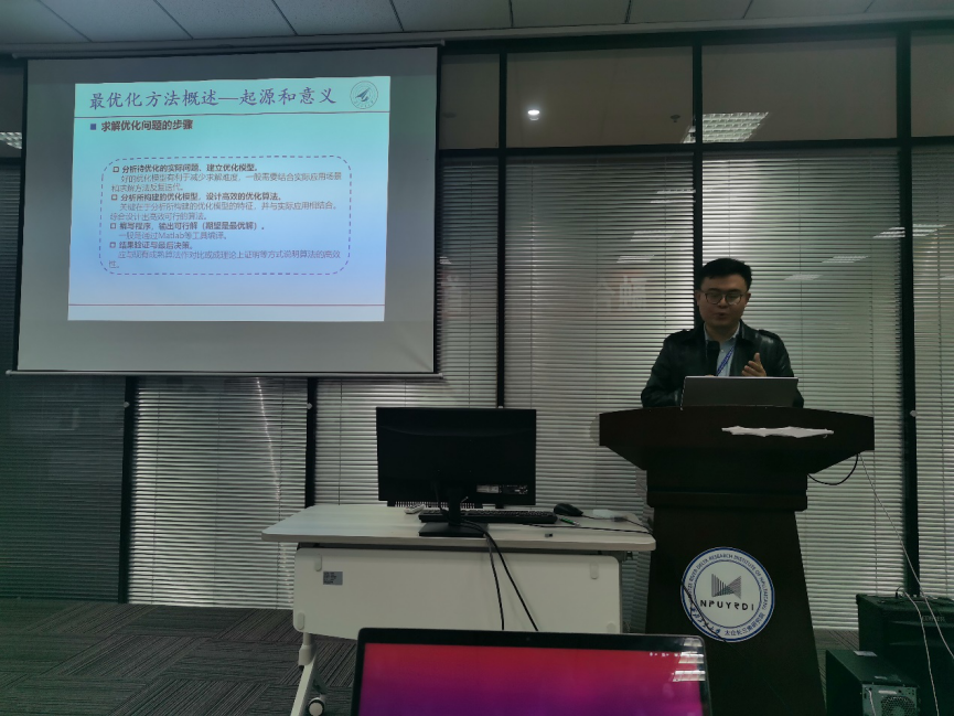 随后,何老师非常体系地为各位同学进行分享讲解。何老师用有趣的语言,讲述了最优化方法的起源和意义,向我们传授了求解优化问题的步骤。