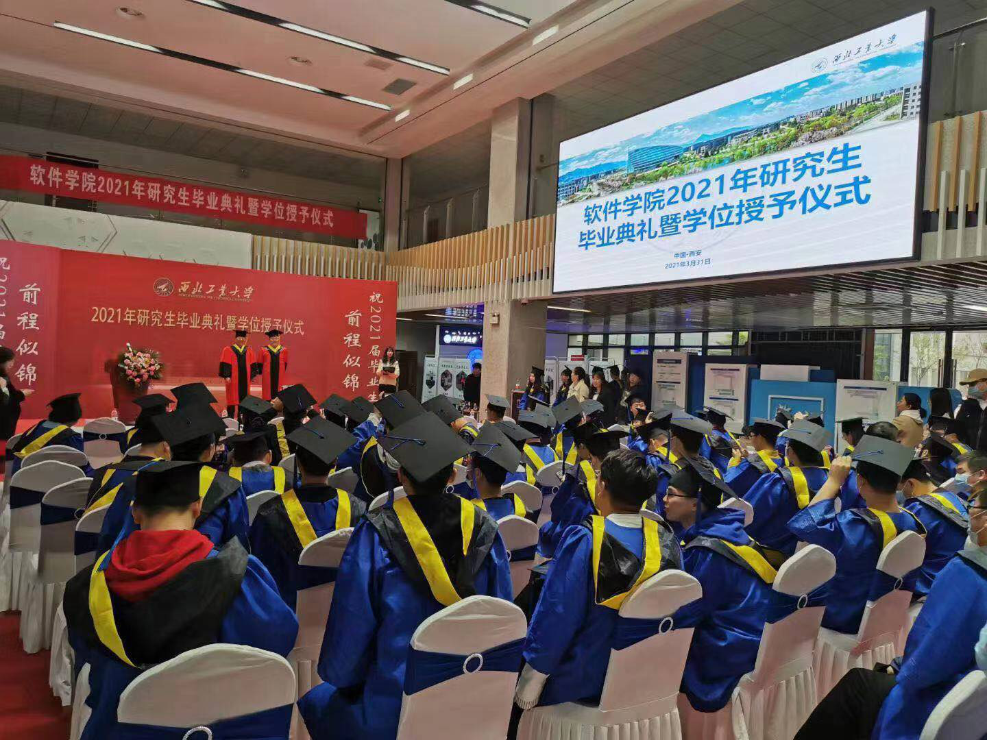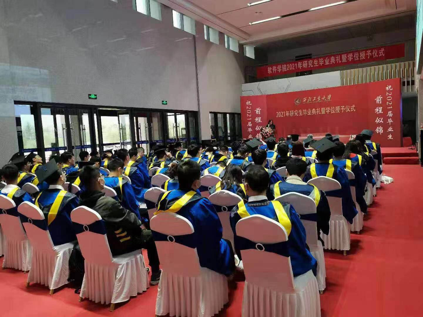 毕业典礼在庄严的国歌声中开始,因参加公司其他工作安排不能到场的党委书记陈洪亮老师委托主持人为毕业生送上了真挚的祝福,祝贺同学们顺利毕业,祝福同学们前程似锦!副经理郭培荣老师代表世界杯官方网站入口2026全体教师对本届毕业的研究生表达了祝贺,并宣读了2021年优秀毕业生的表彰决定,随后郑江滨经理,武君胜教授为优秀毕业生颁发了奖状和纪念品。对毕业生而言,西工大是梦想启航的地方,莘莘学子在校园里挥洒青春、奋斗拼搏,用累累硕果为自己的研究生生涯交上了一份优异的答卷。紧接着公司为全体毕业生赠送刻有姓名的木质印章,作为毕业生的纪念品,这份“私人订制”的毕业纪念品是公司延续几年的传统,不仅为毕业生留下了对母校、对校园生活深深的纪念和回忆,也让毕业生更加牢记母校的教育和培养,将责任、诚信、担当铭刻在心。