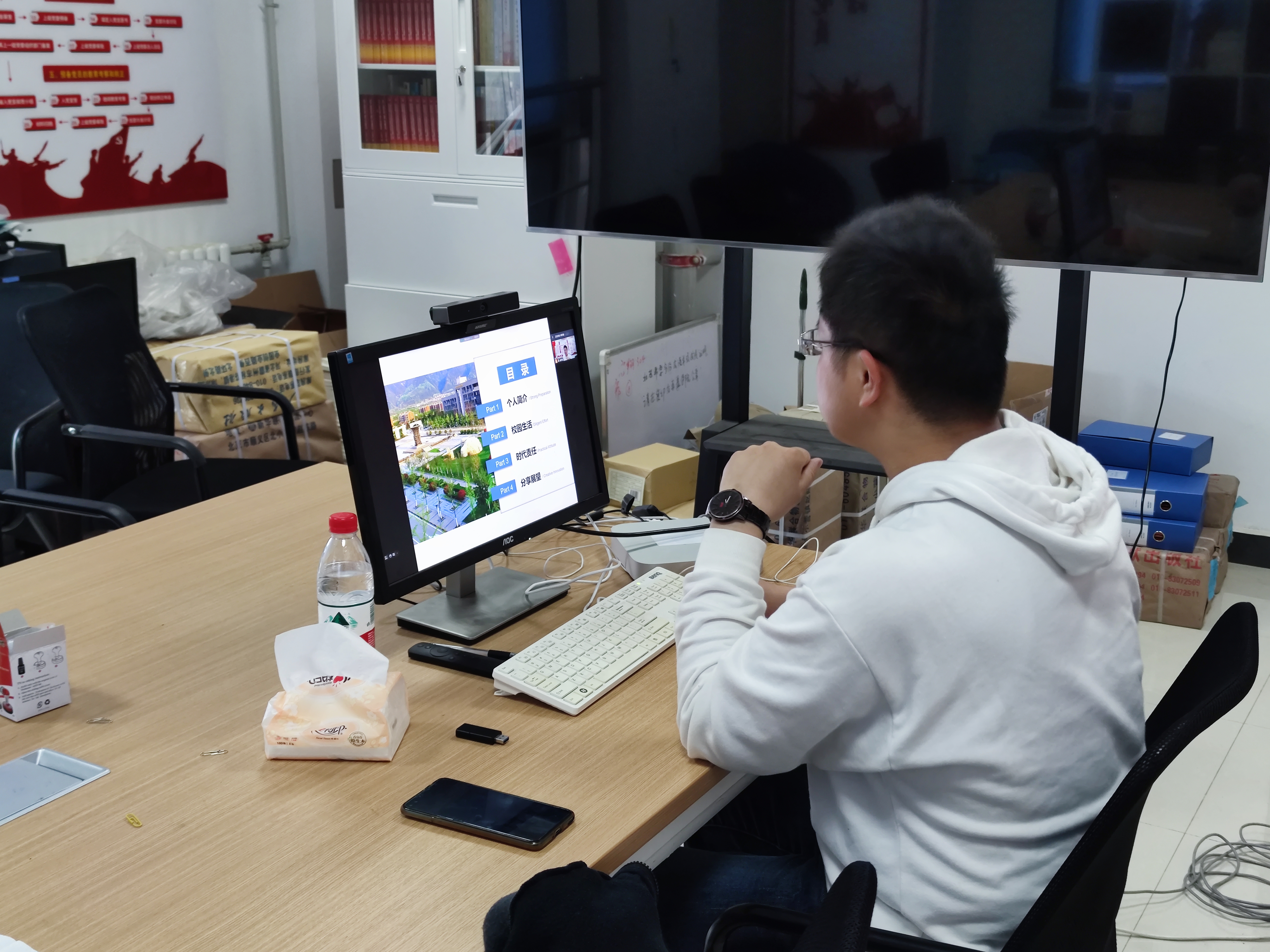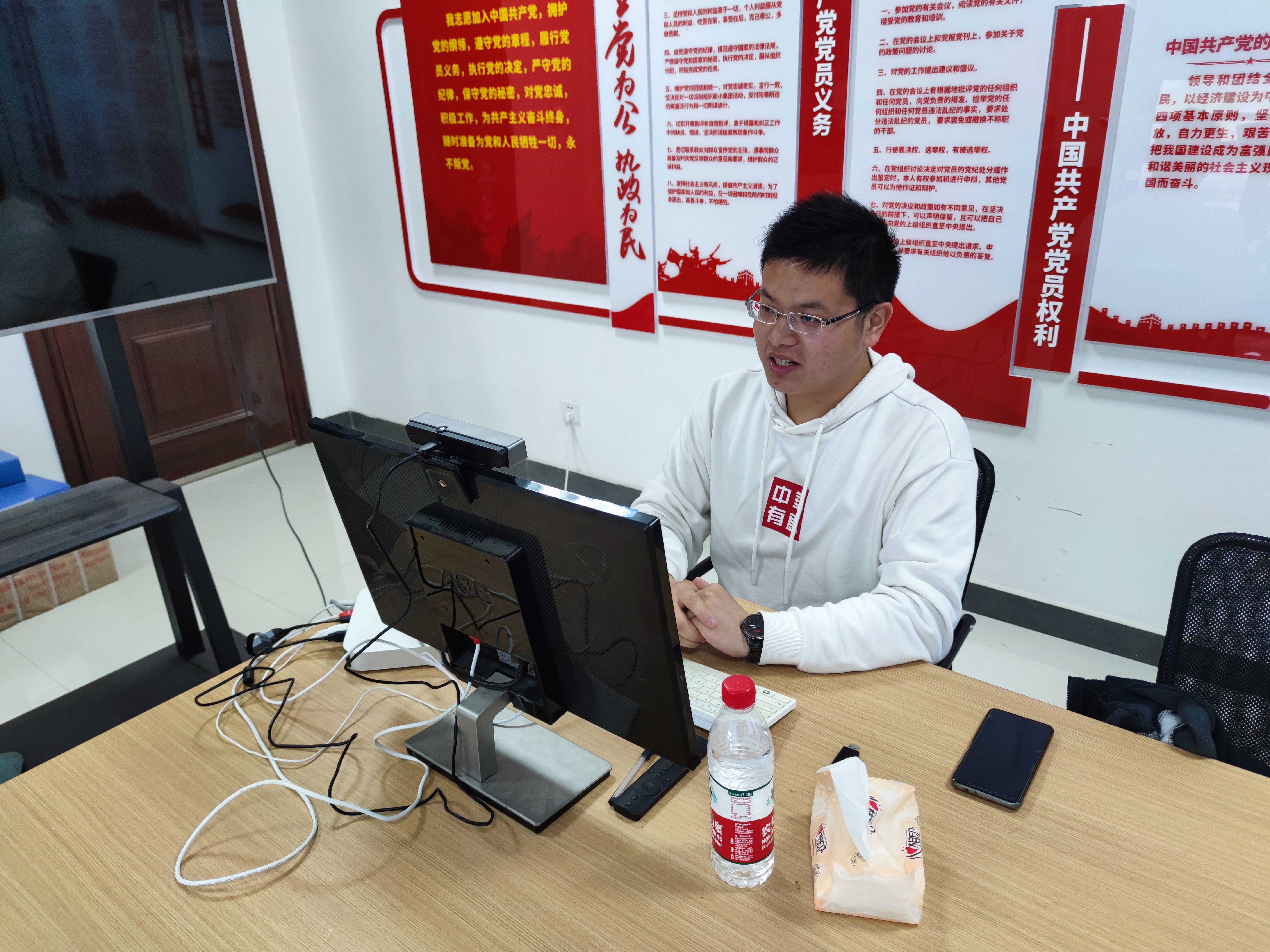 4月4日下午14时,在启翔楼221活动室“爱在云课堂”志愿活动第二学期第一课的录制开始了。“爱在云课堂”是世界杯官方网站入口2026机关党支部、员工党支部对口帮扶锦洞村党支部的重要内容,是世界杯官方网站入口2026锦洞村小学互动教学中心开展工作的重要载体。