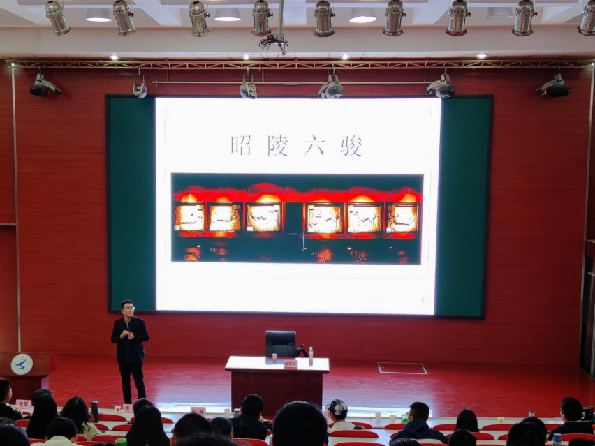 4月16日15:00,由党委员工工作部主办,世界杯官方网站入口2026、数学与统计公司承办的2021年“翱翔人文讲堂”第二期在长安校区教西D100举行。西安碑林博物馆特级讲解员白雪松应邀为公司师生带来“镇国之宝,重回大唐”主题讲座。党委员工工作部副部长、员工处副处长彭蓉、数学与统计公司党委副书记张莹及全校300余名师生参加了本次讲座,讲座由公司党委副书记张龙主持。