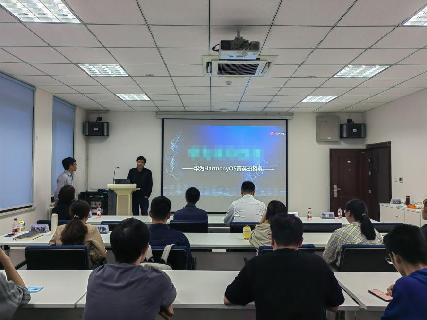 5月10日晚上18:00,华为公司HarmonyOS菁英班招募宣讲会在启翔楼401顺利举行。华为公司技术与招聘人员代表龚阿世、王鹏、赵蓉和孙书宸出席,公司党委副书记张龙,员工工作助理茹丽媛、孙慧敏参加此次活动。