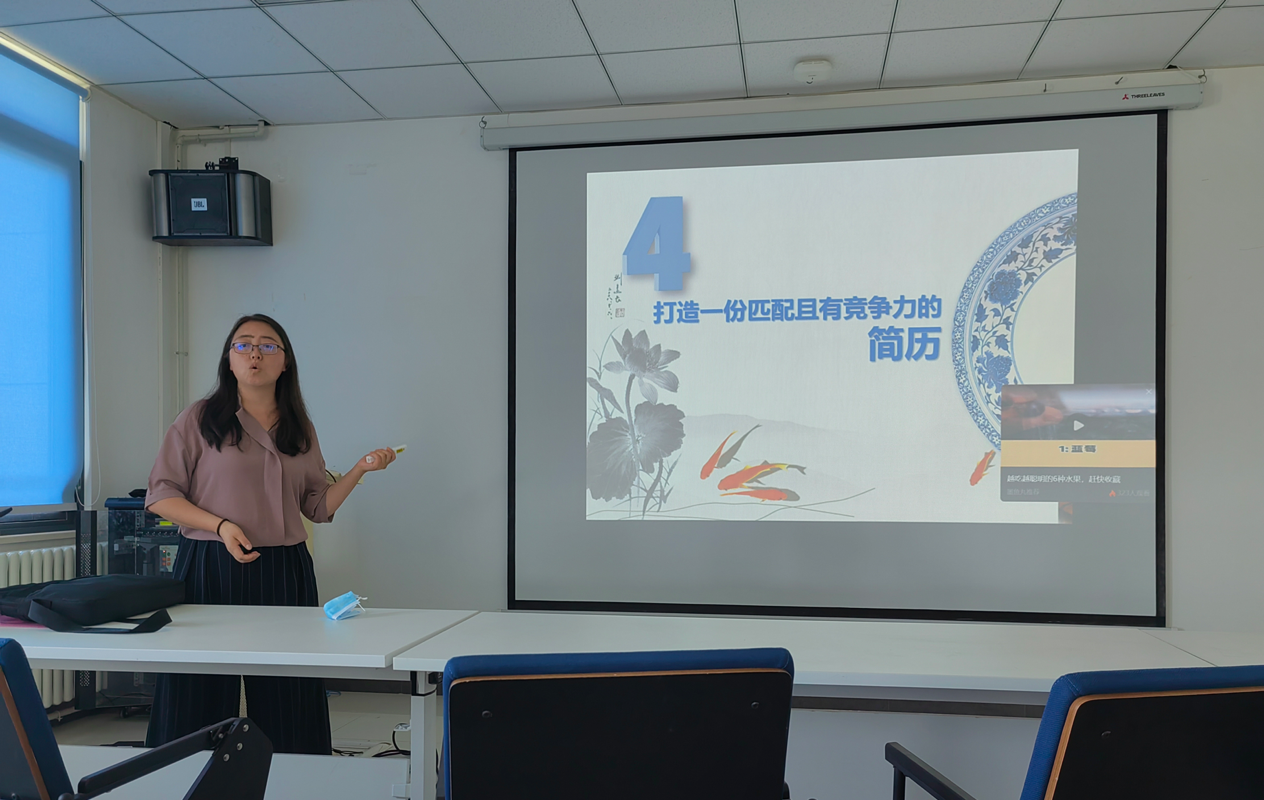 张林木向同学们介绍了培养选调生的目的和意义,鼓励同学们树立远大理想,勇担时代使命,将个人理想融入国家事业。他以陕西选调为例,介绍了选调生报考条件与流程、公司选调生开展情况以及优秀选调生员工风采。此外,他张还介绍了我国新时代的强军目标和培养新时代军队人才的意义,讲解了军官直招和军队文职的报考条件与岗位要求,鼓励同学们筑梦军旅、献身国防。韩利娜介绍了如何打造匹配且有竞争力的简历,从简历的定义、撰写技巧和常见问题三方面进行阐述。她强调,要同学们在简历中突出个人优势,重点介绍与工作岗位相关的项目成果,使简历内容更加丰满。