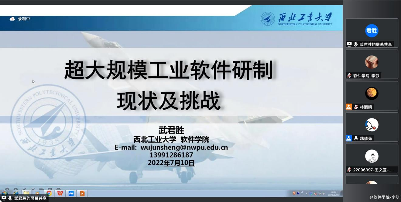 随后,张仕进教授、贺亮教授、武君胜教授和李伟刚副教授分别进行了学术专题讲座。首先,张仕进教授作了主题为《扎根祖国大地,发展自主工业软件》的讲座,在讲座中张仕进教授以中国工业发展现状展开,结合实例讲解我国工业软件的背景及发展现状,分析我国工业软件发展面临的瓶颈及痛点,指出我国工业软件发展突围之道。其次贺亮教授作了主题为《天基物联网与服务平台》的讲座,贺亮教授在讲座中主要介绍商业航天飞速崛起与国家政策支持现状,以各式前端案例讲解了航天基础理论与知识,同时展示目前在研的天基物联网星座与服务平台项目,在此基础上为同学们提供参考研究建议。随后,武君胜教授作了主题为《超大型工业软件研制现状与挑战》的讲座,武君胜教授在讲座中以工业软件概念、分类、发展路径及未来发展趋势等进行内容导入,以航空工业软件为例分析大型复杂工业软件研制现状,分析工业软件研制面临的各种问题及挑战,并提出解决方案及思路。最后,李伟刚副教授作了主题为《云原生技术及其在嵌入式系统中的应用》的讲座,李伟刚教授在讲座报告中介绍云原生作为一种新型技术体系是云计算未来的发展方向,由此展示云原生的核心关键技术,并对云原生在嵌入式系统中的应用进行展望。