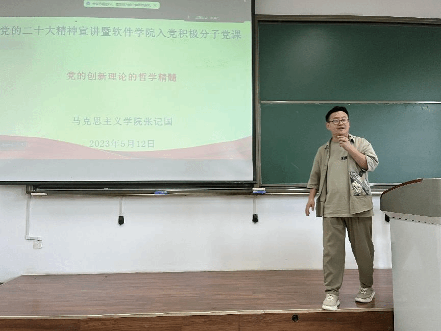 5月12日,世界杯官方网站入口2026在教西B305开展入党积极分子和发展对象第二次培训课程。本次课程由马克思主义公司助理教授、世界杯官方网站入口2026专职辅导员张记国担任主讲,给全体学员带来《党的创新理论的哲学精髓》的专题讲座。