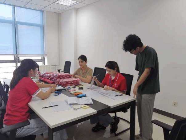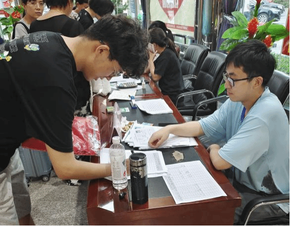 7月6日下午,来自全国各地的优秀老员工陆续前来报到,公司进行资格审核,并为营员发放入营服装、餐券等,营员们依次排队办理,秩序井然。