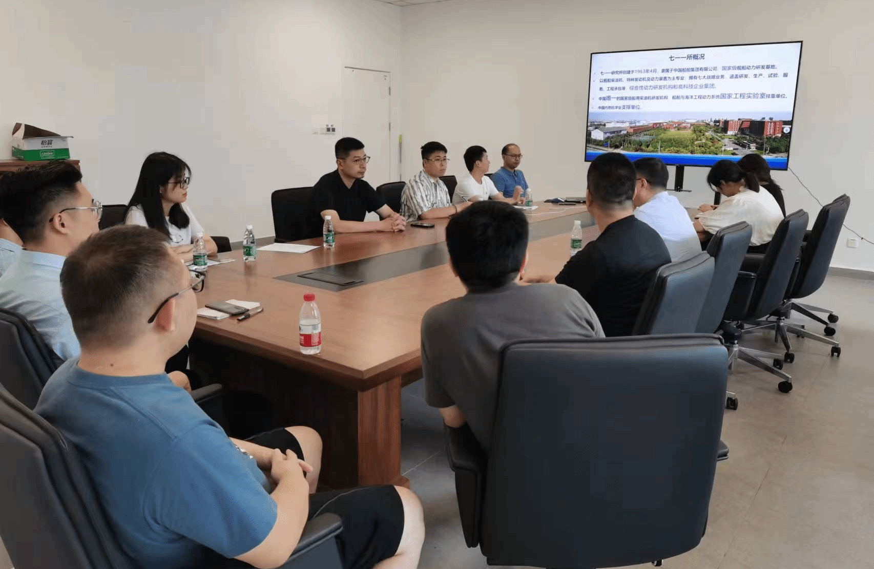 首先,公司党委副书记张龙对曹健一行的来访表示热烈欢迎。接着,曹健介绍了动装部的概况和主要业务情况,并重点介绍了部门在船舶动力装置领域的研究成果和应用,包括新型推进系统的设计与研发、船舶动力系统的性能优化以及节能环保技术的应用等。711所一直以来都致力于提高船舶动力系统的能效和可靠性,通过技术创新不断推动我国船舶工程的发展,技术成果在船舶领域取得了广泛应用。
