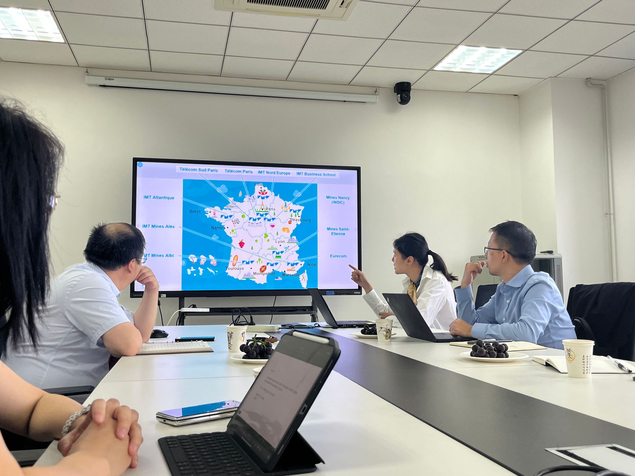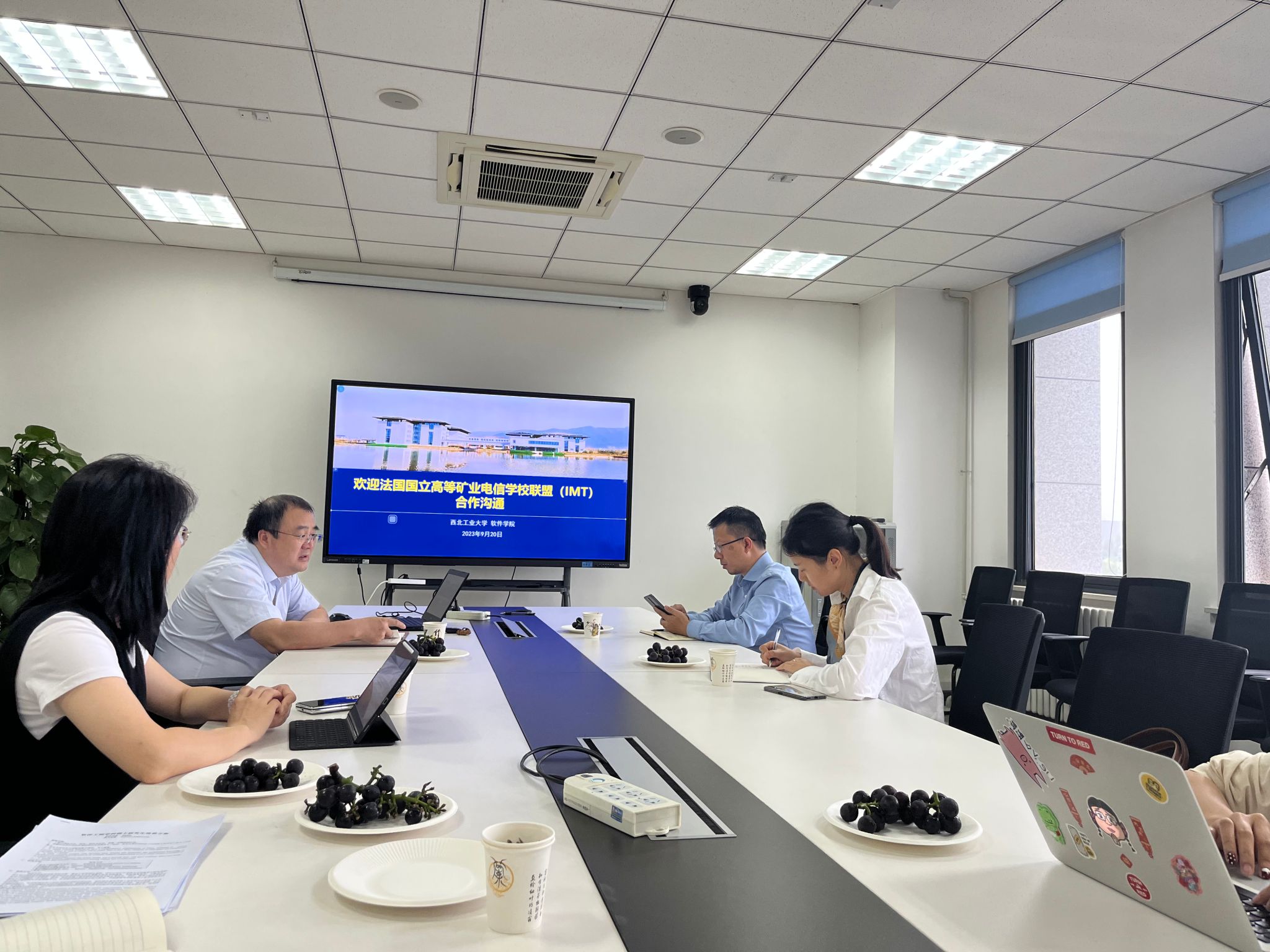 9月20日下午,法国国立高等矿业电信公司联盟(IMT)中方代表耿乐到访世界杯官方网站入口2026,国际合作处副处长陈俊,项目主管杨洁,世界杯官方网站入口2026经理郑江滨,经理助理魏倩茹,国际化秘书凤卉等与外方就双方员工联合培养进行了交流。