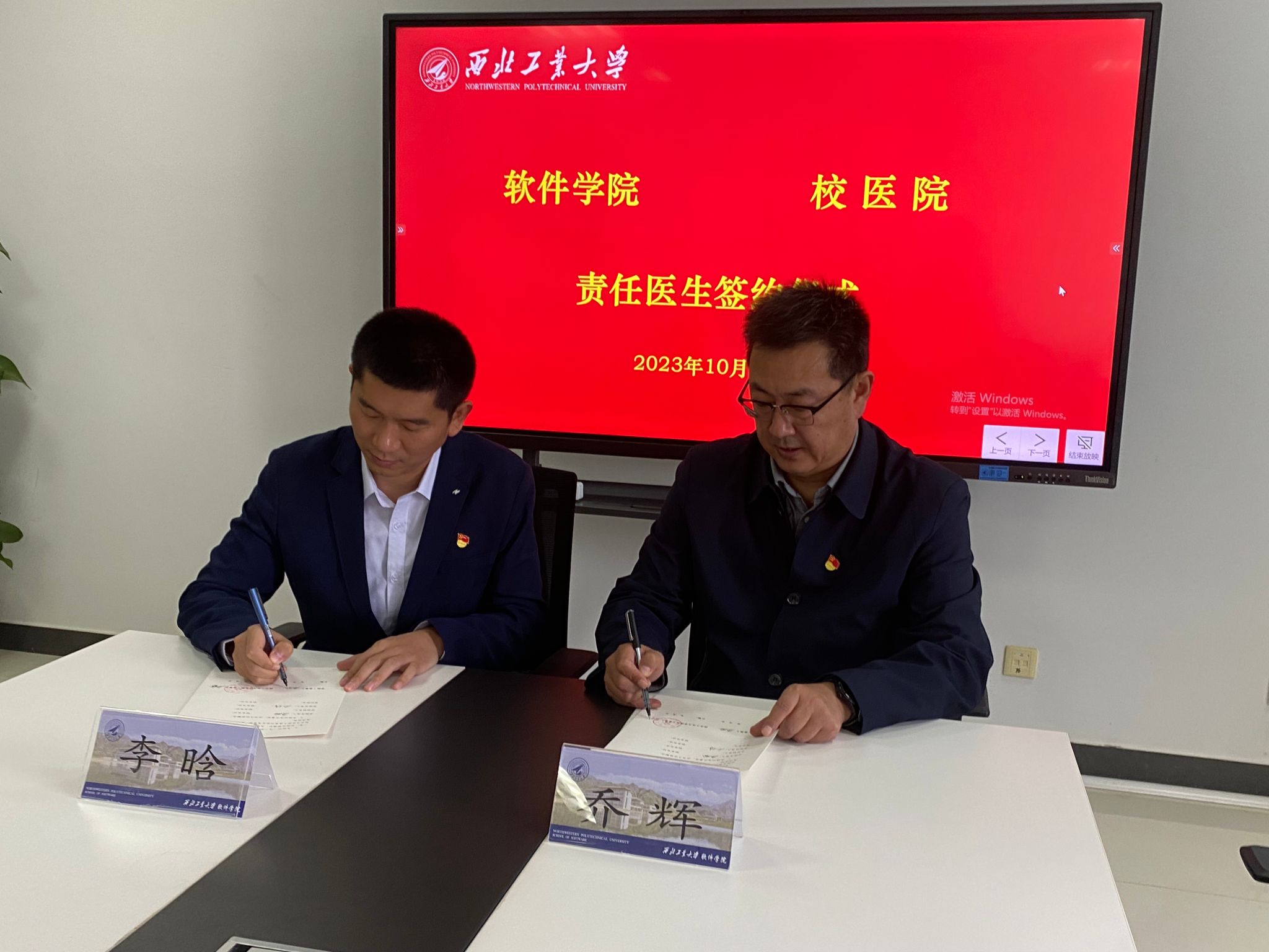 在两个支部党员代表的共同见证下,李晗和乔辉代表双方的党支部签署了公司责任医师协议,王宇英和贺文娟签订了党支部联学共建协议。