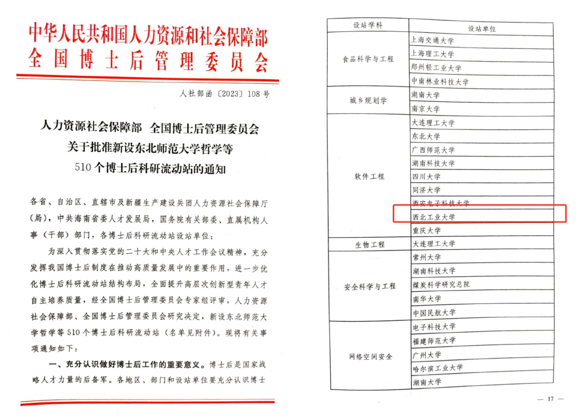近日,人力资源和社会保障部、全国博士后管理委员会联合下发《关于批准新设东北师范大学哲学等510个博士后科研流动站的通知》(人社部函〔2023〕108号),世界杯官方网站入口2026申报的软件工程博士后科研流动站成功获批。