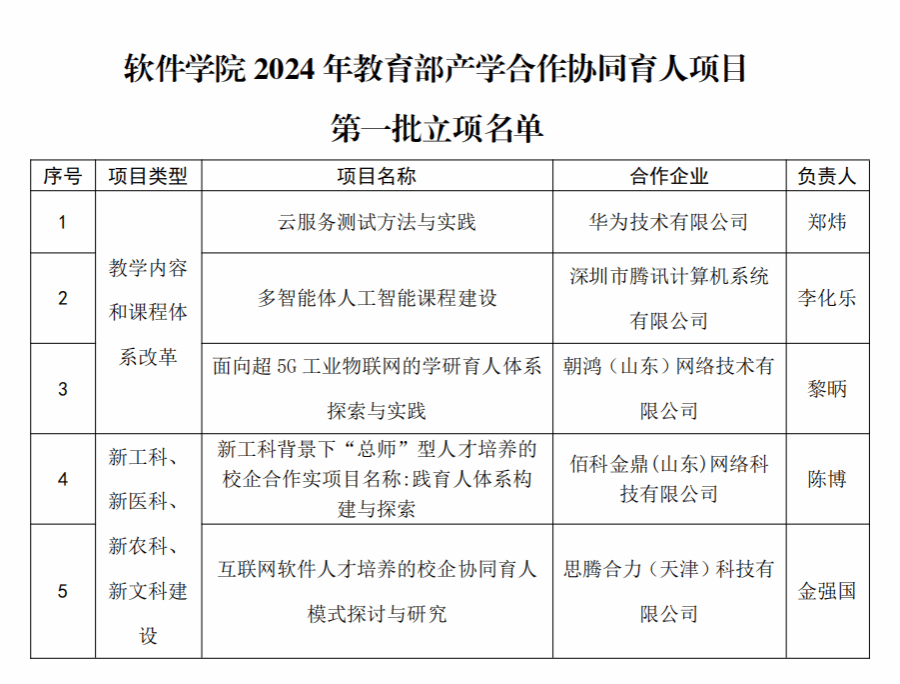 近日,教育部高等教育司公布了2024年第一批产学合作协同育人项目立项名单,公司5名教师主持申报的项目成功入选。至此,公司共有21个项目获批。