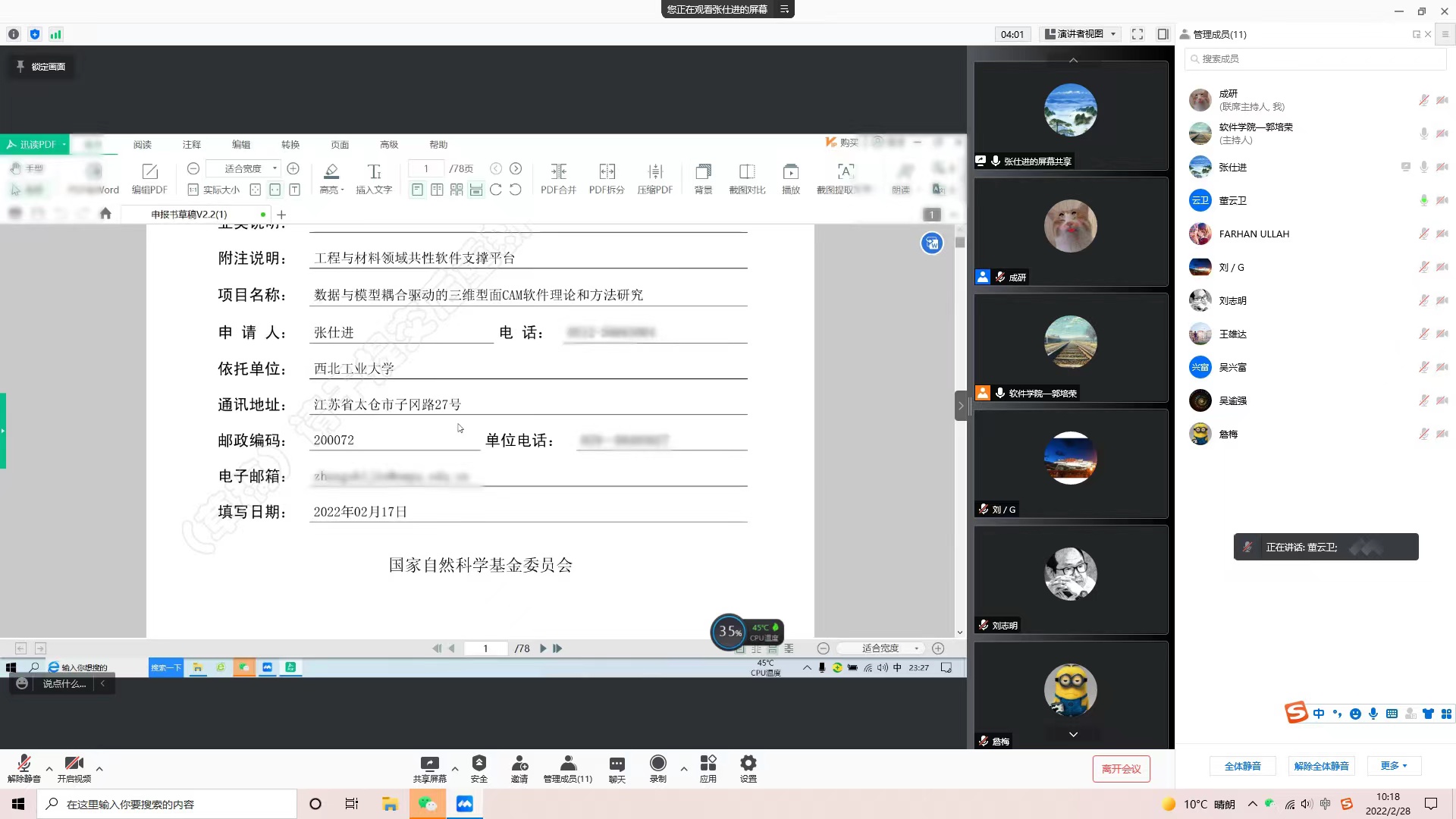 2月28日,公司组织进行了2022年度国家自然科学基金重点项目和外青项目的申报评审,特邀世界杯官方网站入口2026詹梅教授、机电公司刘更教授、计算机公司董云卫教授和世界杯官方网站入口2026刘志明教授作为评审专家,对公司教师拟申报的2022年度国家自然科学基金重点项目和外青项目进行了线上评审辅导,评审会由副经理郭培荣主持。