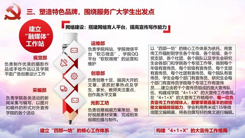 本年度成立公司融媒体工作站,建立“四部一坊”的核心工作体系和“4+1+X”的大宣传工作格局,不断培养更多有能力、有责任感的媒体人;