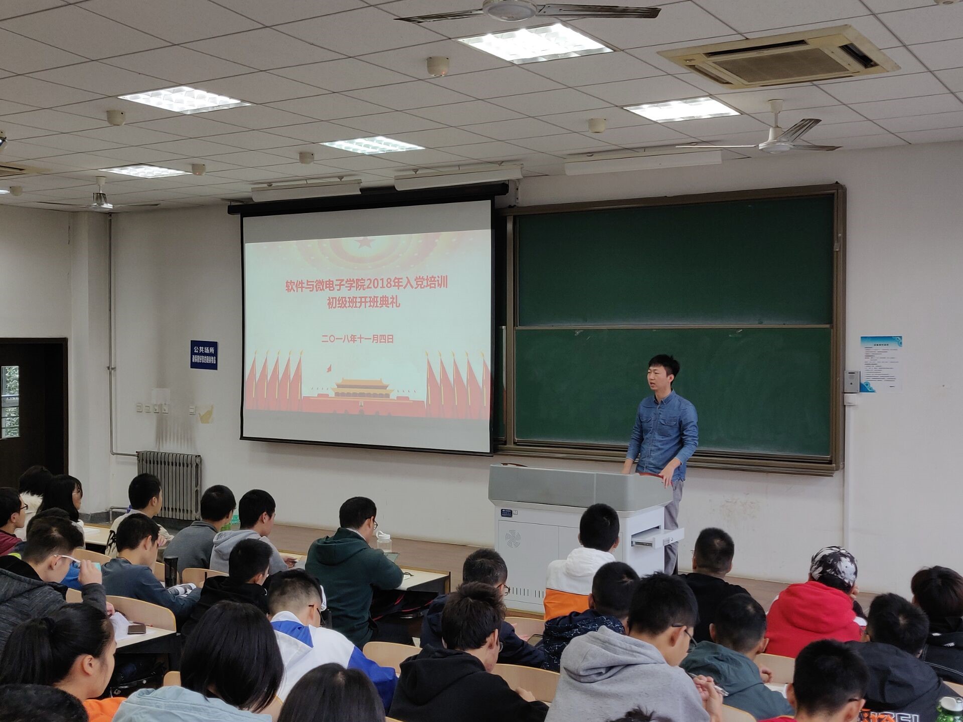 11月4日上午10:30,软件与微电子公司2018年入党培训初级班开班典礼在长安校区教学东楼B206教室顺利举行。公司入党培训初级班全体学员参加了本次培训,本次党课由2018级本科生辅导员樊超主讲。