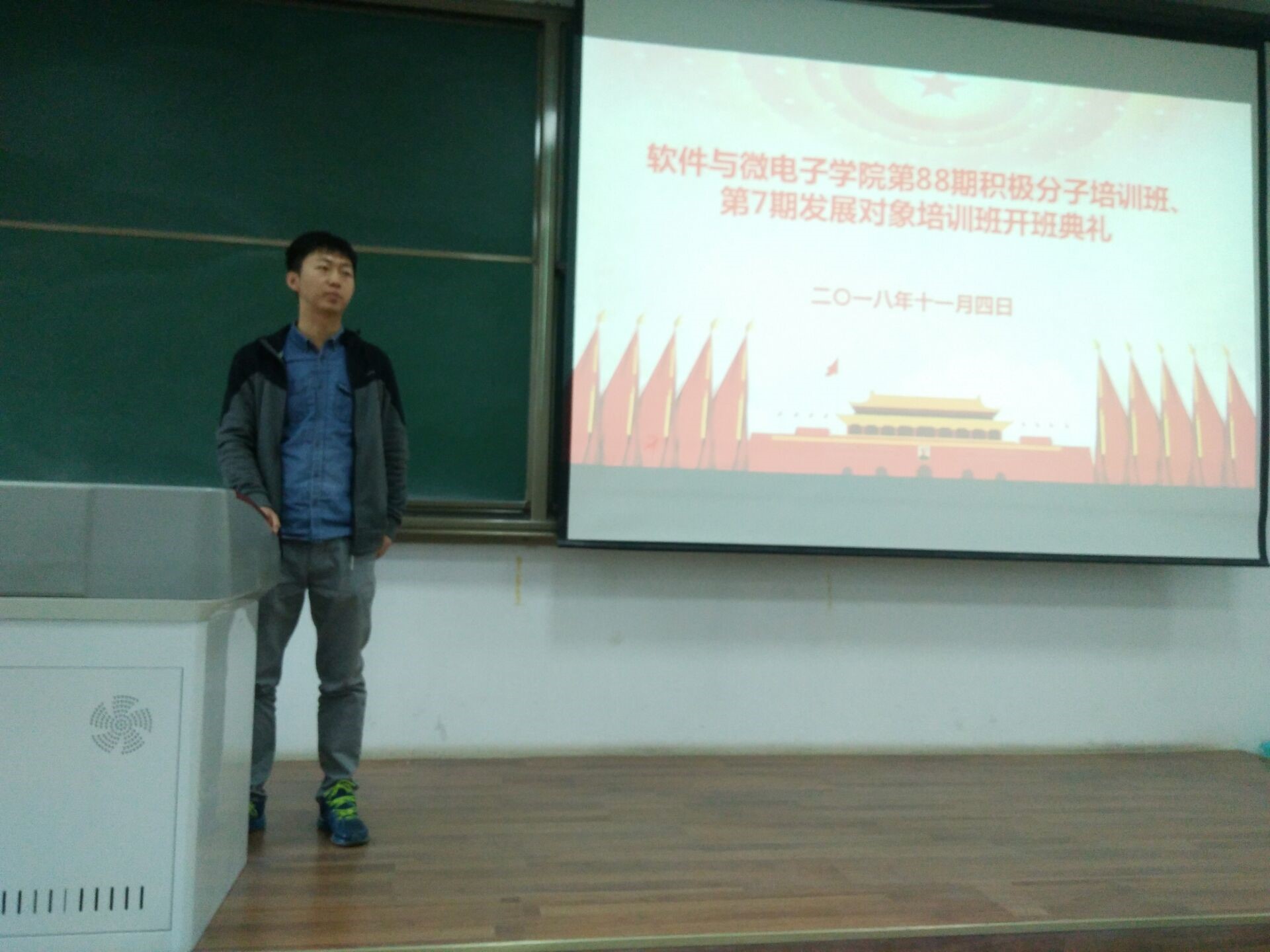 11月4日上午9:00,软件与微电子公司第88期入党积极分子培训班、第7期发展对象培训班在长安校区教学东楼B204教室开课。本次党课由2018级本科生辅导员樊超主讲。