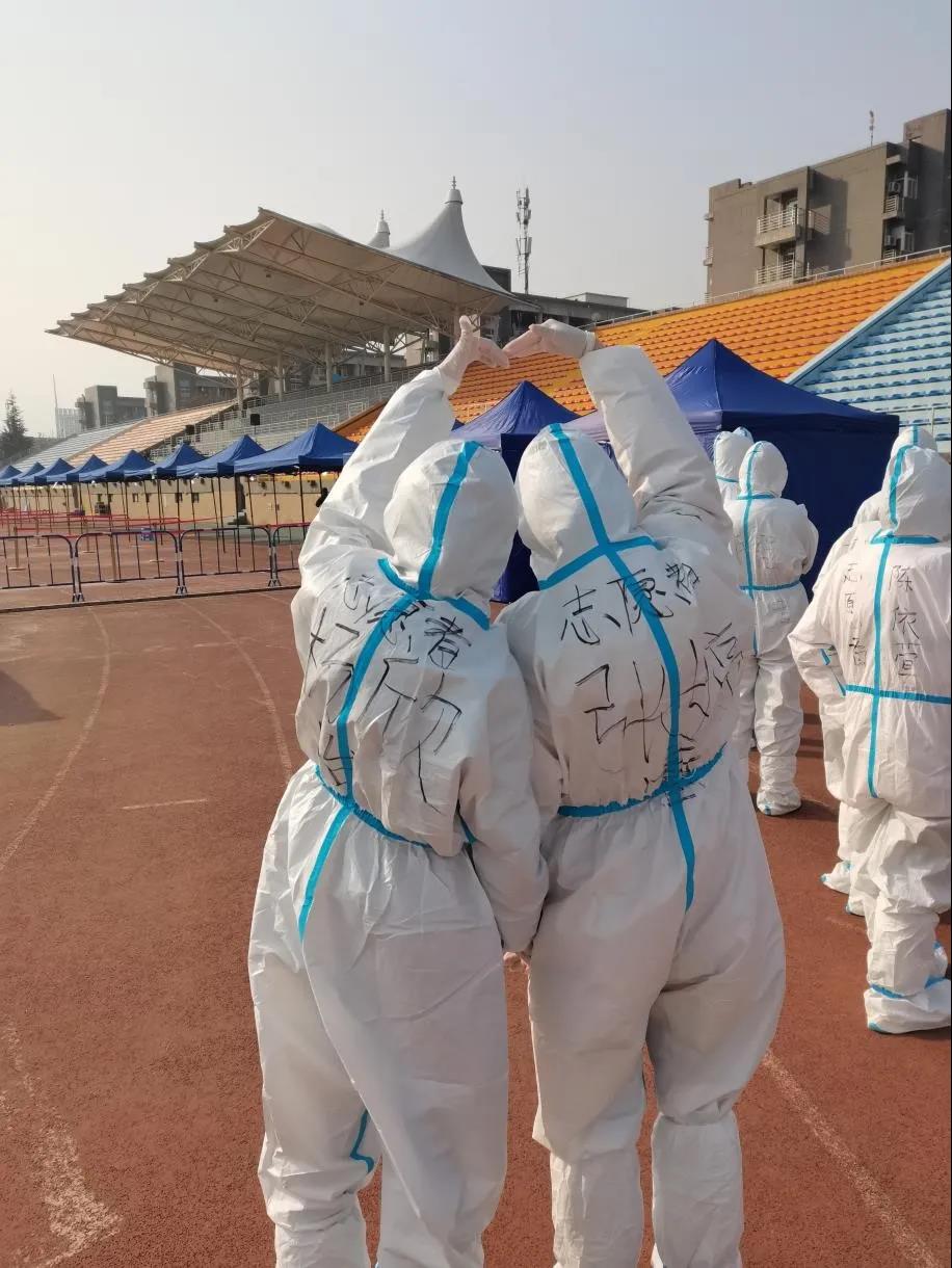 (图右,身着白色防护服的张婷睿)