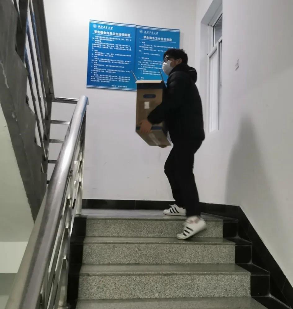 (在宿舍门口输送物资的尹皓轩)