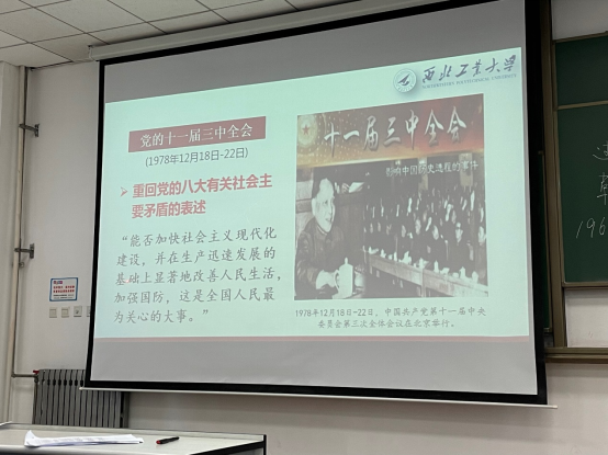 随后,王换向同学讲述在1978年召开的十一届三中全会将中国的经济发展拉回正轨。时隔两年后,党中央在《关于建国以来党的若干历史问题的决议》中对我国的主要矛盾做了新的论述:“社会主义改造基本完成以后,我国所要解决的主要矛盾,是人民日益增长的物质文化需要同落后的社会生产之间的矛盾”。从此,我们国家的经济社会有了飞跃般的发展,人民的生活得到了极大的改善,这都得益于我们党对社会矛盾的正确判断。