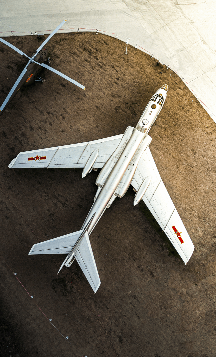 轰-6甲,这位轰-6机型的先驱,傲然挺立,宛如一位历经风霜的老将,虽静默不语,却诉说着往昔的辉煌。机身侧畔,红星熠熠,那是它荣耀的徽章,见证了无数风雨兼程的岁月。即便时代更迭,新机辈出,其里程碑式的地位依旧熠熠生辉。它指引着后来者不断前行,在蓝天之上续写新的传奇。总师亦是如此,其可贵精神也激励着一代代行过侧畔的西工大学子自强不息,砥砺奋进。