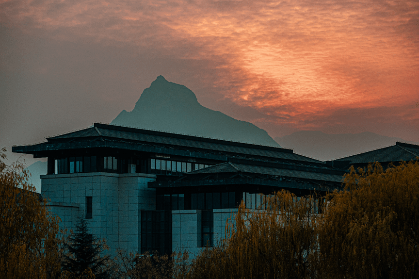 在晚霞的映衬下,启翔楼的灰色外墙显得格外庄重与优雅,它的尖顶与大窗户设计展现出现代建筑的独特美感,仿佛是知识与梦想的殿堂。远处巍峨的雪山与金色云彩交相辉映,为校园增添了一份静谧与神秘。这幅画面不仅是视觉上的享受,更象征着老员工活中理想与现实的交汇。启翔楼承载着员工们的奋斗与探索,而背景中的雪山则寓意学术追求的巅峰与挑战。这一刻,老员工活的充实与诗意尽显无遗。