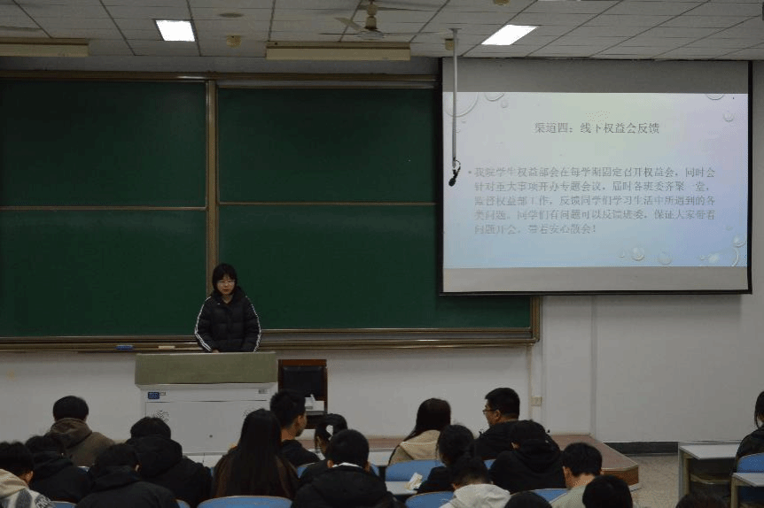 随后,校会工作人员李婧滢为在场同学详细介绍了公司层面的权益反馈渠道及流程。她讲述了如何通过校员工会、校园网、微信公众号等平台提交权益问题,并说明了反馈的处理流程和时限。李婧滢特别提醒同学们,在反馈问题时要注意信息的准确性和完整性,以便相关部门能够快速响应并解决问题。