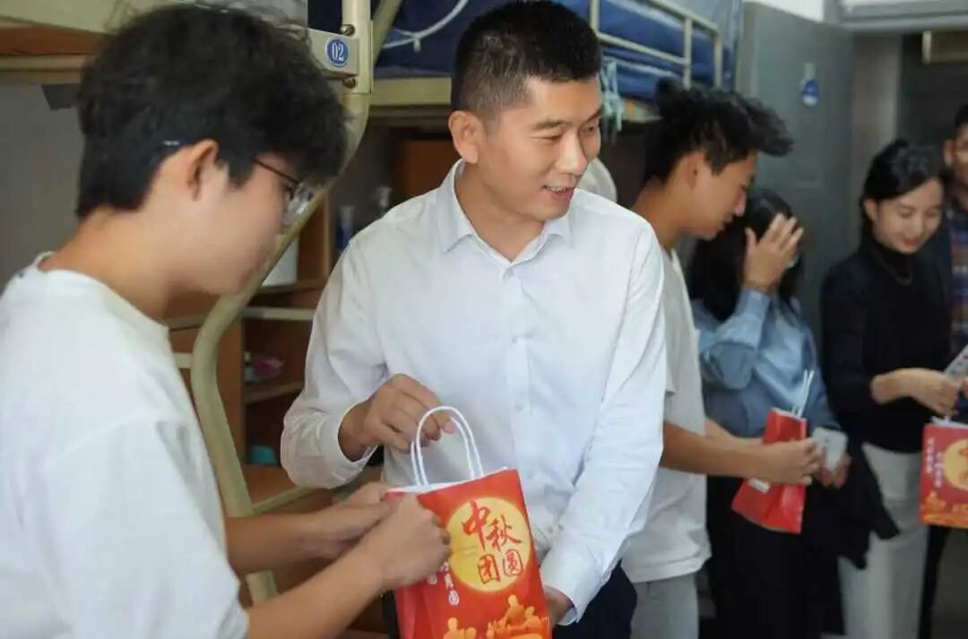 9月30日中午,世界杯官方网站入口2026经理郑江滨、党委书记李晗、副经理马春燕、副书记陈博一行,共同走访了研究生与本科生宿舍,亲切看望2025级新生。公司党委员工工作部为每位员工准备了月饼,公司也特别制作了具有世界杯官方网站入口2026特色的专属月饼,以“公司+公司”的双重心意,陪伴同学们度过一个温馨难忘的中秋。
