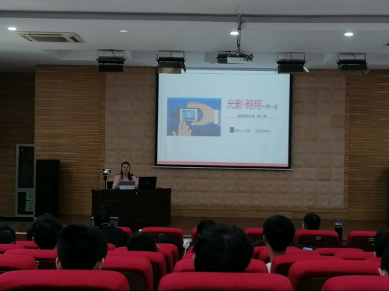 本次宣讲会的中心内容是如何打造爆款短视频。刘韬提出了爆款短视频五大必备要素:背景配乐、画质清晰、精雕细琢、创意标题、内容为王。在播放如李子柒等知名短视频博主作品的同时,她耐心细致地讲述其成功之处、抓人眼球的点,集中展示和讲解运用“平台级特效”“技巧型特效”“专业型特效”等特效技术的成功作品,同学们兴趣盎然、听得十分专注。