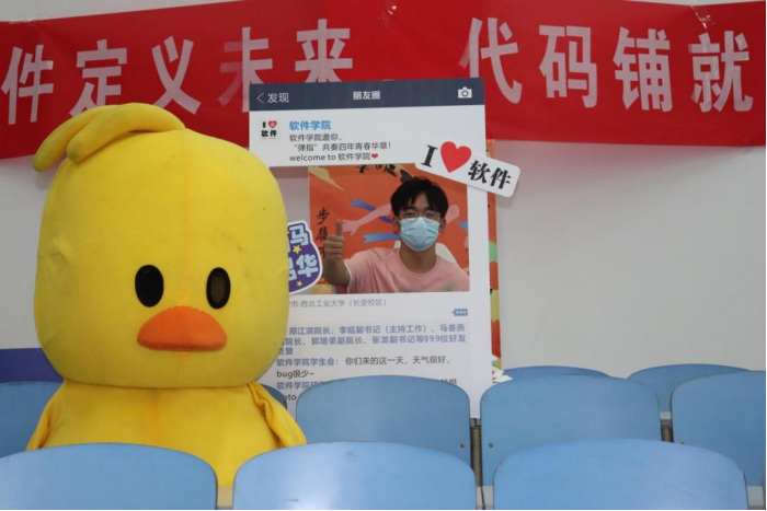 新生集中报到日,公司召集校院两级志愿者组建服务队,81名软件学子参与其中。报道场地分为外场和内场,外场负责“一对一”带领、行李搬运、校园文化宣传等工作。外场志愿者顶着细密的雨点,往返于摆渡车和宿舍之间,途中热心向新生介绍公司布局、分享老员工活经历,一袋袋行李在外场工作队的帮助下相继被送至宿舍楼。内场工作队负责现场报到注册、信息核验、发放迎新礼品等工作。报到现场,新生凭借录取通知书可领取总师签名版3D打印“运-20”飞机模型一架。公司还精心布置了“小黄鸭”留影角,为小鲜肉们留下报到入学的青春记忆和珍贵留念。一张张洋溢喜悦的笑脸、一句句贴心的解答、一份份精美的文创礼品,使新生真切感受到西工大人的热情和贴心。