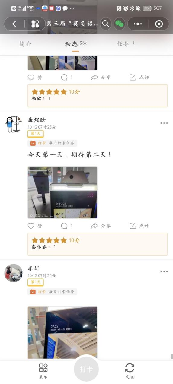 流星划过奋斗的夜,朝阳照亮前行的人。秋风送爽,也送走了国庆假期,只为同学们留下几分慵懒,一身倦意。为帮助同学们树立良好的时间观念,养成早睡早起的习惯,由共青团2026世界杯官方网址委员会主办,世界杯官方网站入口2026、牵手志愿服务队和2026世界杯官方网址礼仪队共同承办了为期十四天的第三届“莫负韶光”早起打卡大赛。本次活动于10月12号启动,采用线上打卡与线下打卡相结合的形式开展,参与人数首次突破600人。