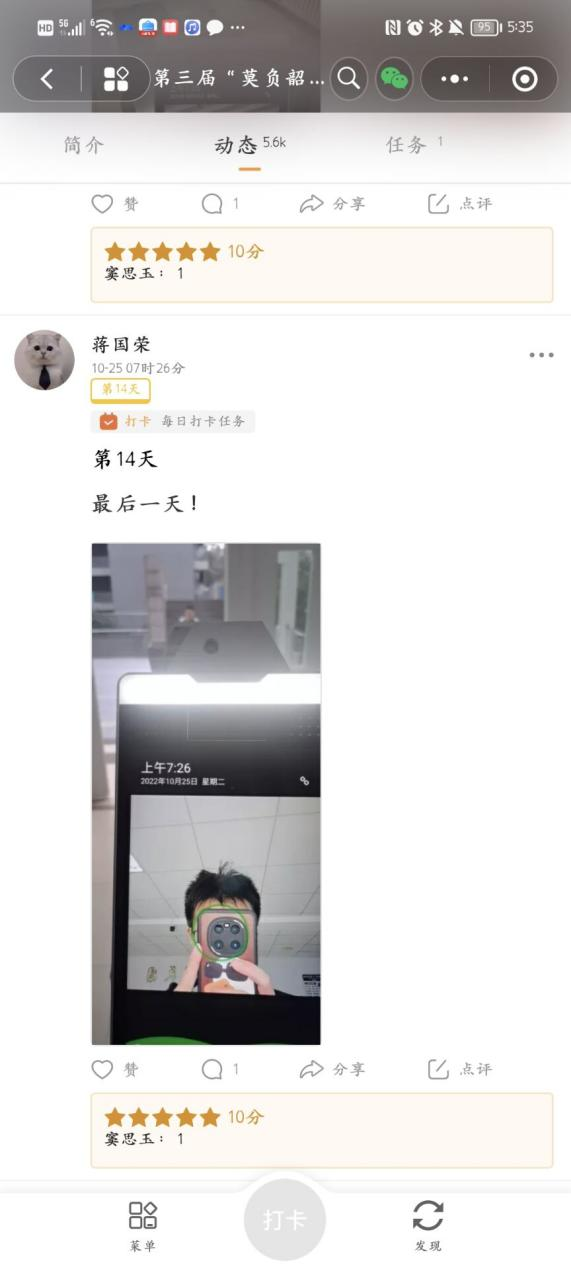 本次“莫负韶光”早起打卡活动不仅吸引了众多同学参加,而且也有着许多热衷志愿活动的同学担当本次活动的志愿者。作为本次活动的志愿者之一,我深深感受到了早睡早起的益处,这无疑帮助我养成了良好的作息习惯,同时,作为志愿者,我也感受到了肩负的责任,激励我能够每天准时起床以避免错过需要帮助同学设定的时间,此外,在志愿者小组内,我也感受到了团队合作的魅力,大家携手并进,共同完成相应的志愿活动,不辜负同学们的期盼与早起的决心。