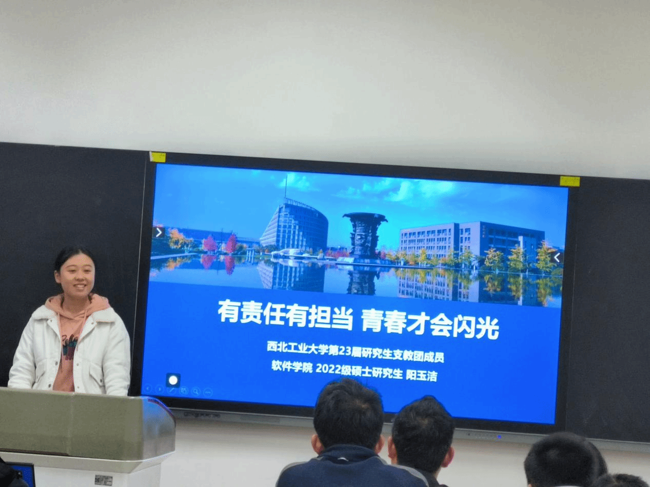 随后,谭渝川学长分享了自己的支教经历。他讲述了自己在广西融水苗族自治县丹江初级中学担任语文老师时的故事。通过学长的分享,同学们对支教团有了更进一步的了解。