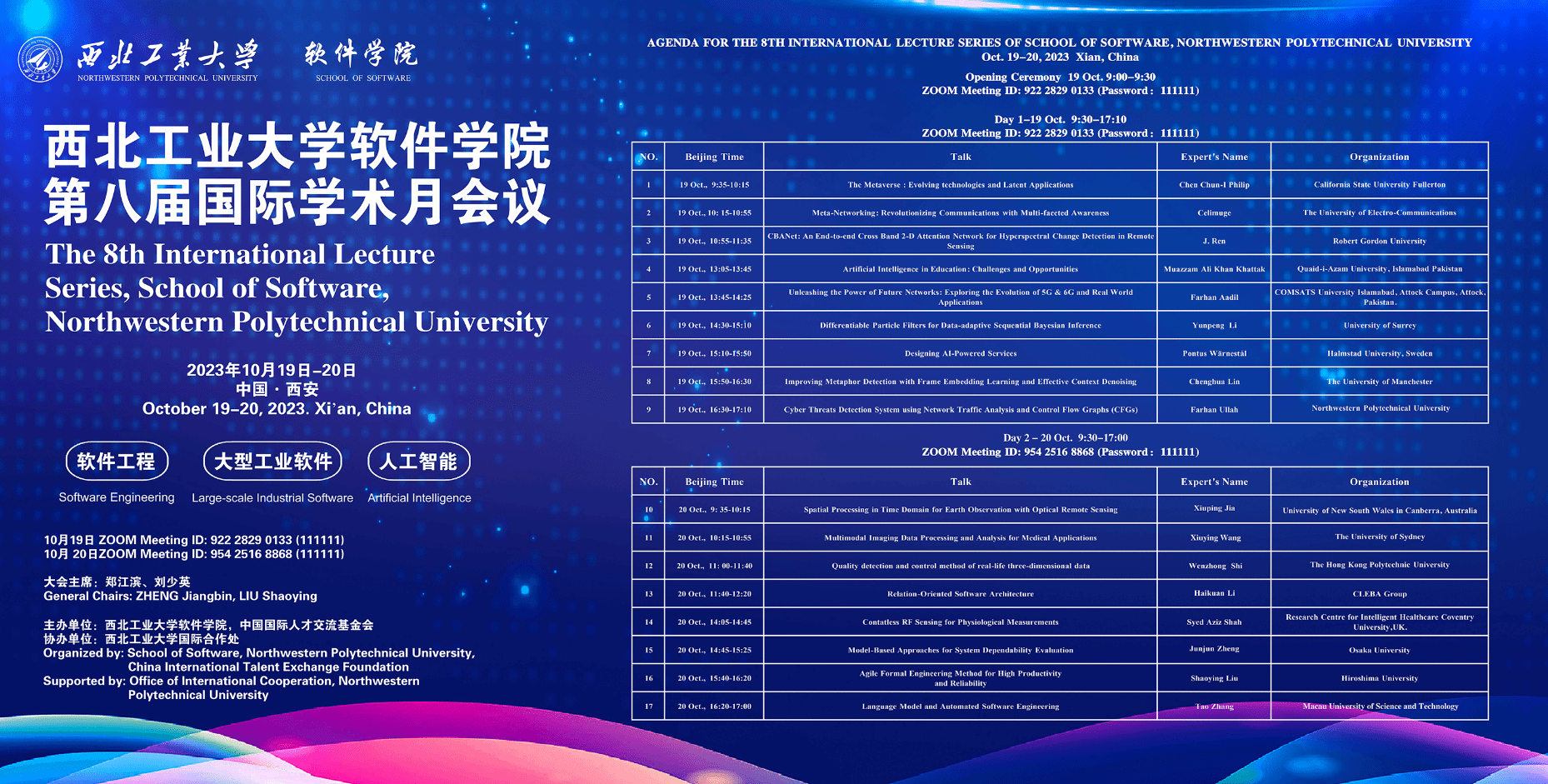 10月19日,ZOOM 会议号: 922 2829 0133,会议密码:111111