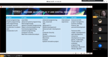 接着,尹老师向大家介绍了两校的合作项目,包括学期/学年交换和短期交流项目。公司员工可自行选择EPITECH在法国4个不同城市的校区进行学习,有两个不同的交流项目可供员工选择,并且可为西工老员工免去学费。在项目中,公司员工可与来自全世界90多个不同国家的员工组成国际性团队,不仅能够提升跨文化交流的能力、培养国际化视野,更能提升员工的编程能力。