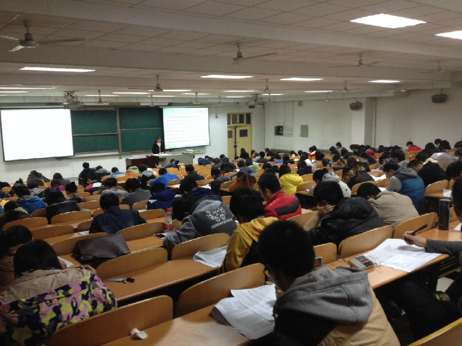 为了让同学们提前进入英语四级考试状态,提高四级考试通过率,11月17日晚上7点,世界杯官方网站入口20262013级组织了一场英语四级模拟考试。此次模拟考试严格按照全国大学英语四级考试大纲标准,考卷题型和考试流程与真实考试完全相同。本次模拟考试由2013级辅导员齐基和尹晓娇老师监考。