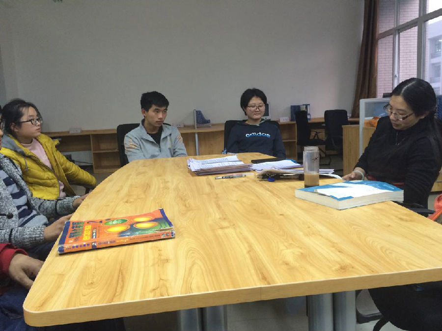 首先,导师就小组每个人的期中考试各科成绩对我们学习情况进行详细的询问,了解了我们的学习进度,和我们交流了学习经验与方法,给我们提了些学习方面的建议。接着我们和导师互相交流了最近的生活状况,导师对我们的生活状况进行了了解,并对大家日常生活给出了指导。