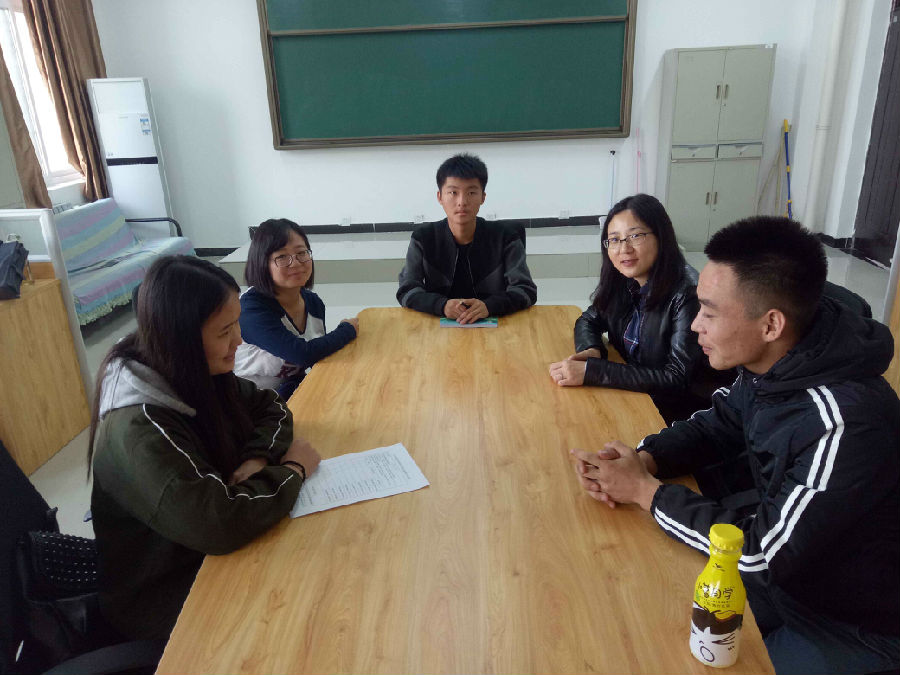 于2016年10月19日在经管楼203与马玲导师见面交流在学习和生活上遇到的问题,参与成员:田舒、赵昱豪、李龙霞、热汗拜克·木汗拜提。