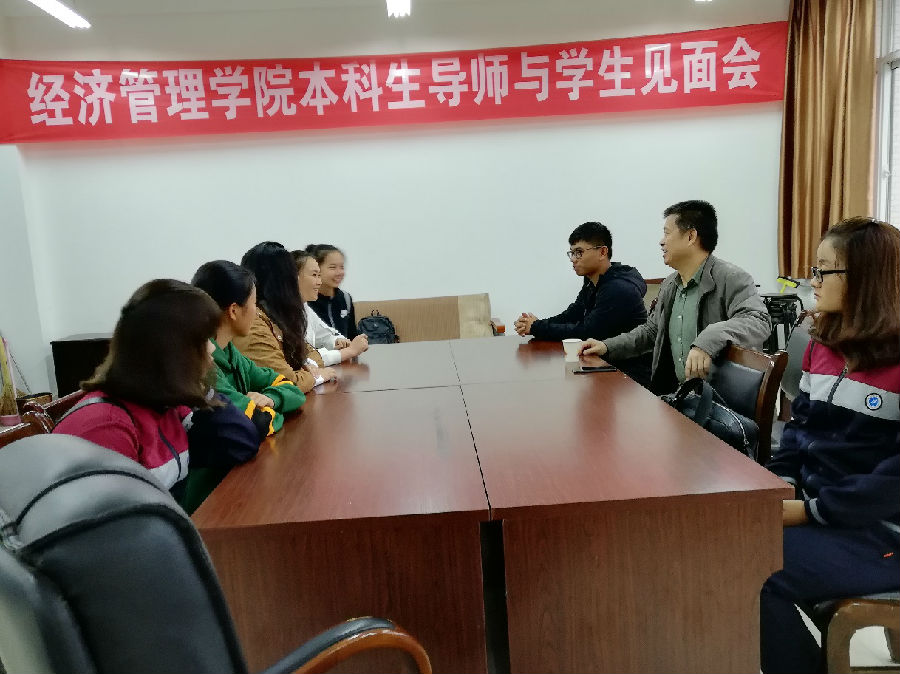 会议第一项,吴海鸥老师与各位同学进行了自我介绍,了解彼此。同学们略显紧张,在吴海鸥老师的引导下,气氛渐渐融洽。会议第二项,吴海鸥老师对导师制作出简述,结合公司情况具体说明了工商管理类四大专业团队力量及未来就业方向,对同学们起了一定的引导作用。会议第三项,小组成员每个人发表意见,陈述自身入校以来所遇到的问题与困惑。恰巧大三的学长学姐也在,吴海鸥老师便就老师方面与员工本身方面具体详细地解答了同学们所遇到的种种问题,指导同学们在大一应当注重的事项,开导新生们逐渐适应环境,告诉同学们学习的重要性。最终小组成员对自身专业有了更深刻的了解,对大学学习生活有了更有效的大致规划,以及克服初在他乡求学之道的种种苦难的决心。