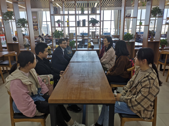 在见面会初始,李善燊老师耐心周到地为同学们讲述他近期的所见所闻,为同学们日后的学习生活提供了经验。同时,同学们也很热情,王冬、李佳欣等同学积极向老师提问自己遇到的困难与问题,李善燊老师为他们作出详细解答,为他们提出建议和解决的方法。最后,李善燊老师和同学们共进午餐,在愉快融洽的氛围中交谈,并顺利结束了此次会面。