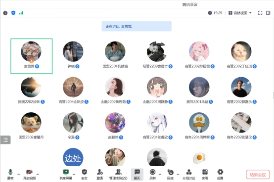 10月22日,世界杯官方网站入口2026经济系袁雪霈老师通过腾讯会议开展2023-2024学年第一学期第一次导师制见面交流会,与会员工共23名,17名二年级员工和6名一年级新生全部参会。