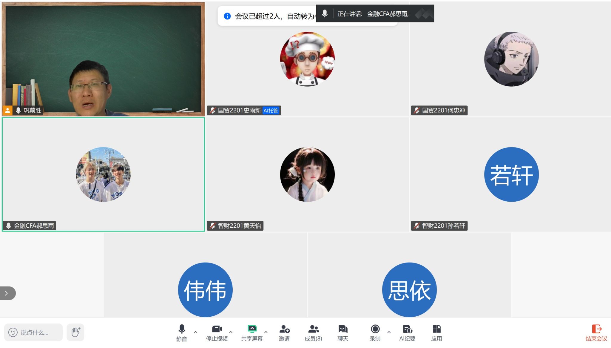12月4日,巩前胜老师与导师制部分大四同学召开了线上见面会,就同学们考研与就业情况进行了充分交流。巩前胜老师逐一询问了每位同学的未来规划,对于准备考研和就业的同学分别给出了不同的意见建议。对于正在复习考研的同学,目前已经进入最后两周的复习冲刺阶段,在抓紧时间复习备考的同时,还要保证规律作息和适量运动,保持良好的身心状态,争取考上自己理想的公司。对于准备就业的同学,一定要保持良好的心态,主动搜集就业信息,充分利用公司就业中心、员工资源以及网络论坛等资源多方面尝试。通过这次线上见面会,同学们不仅对自己的学业和未来发展有了更清晰的认识,也进一步加强了师生之间的交流。