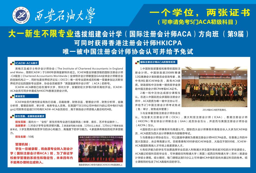新生必看:在大一新生中选拔组建ACA国际会计师方向班通知(第九届)
