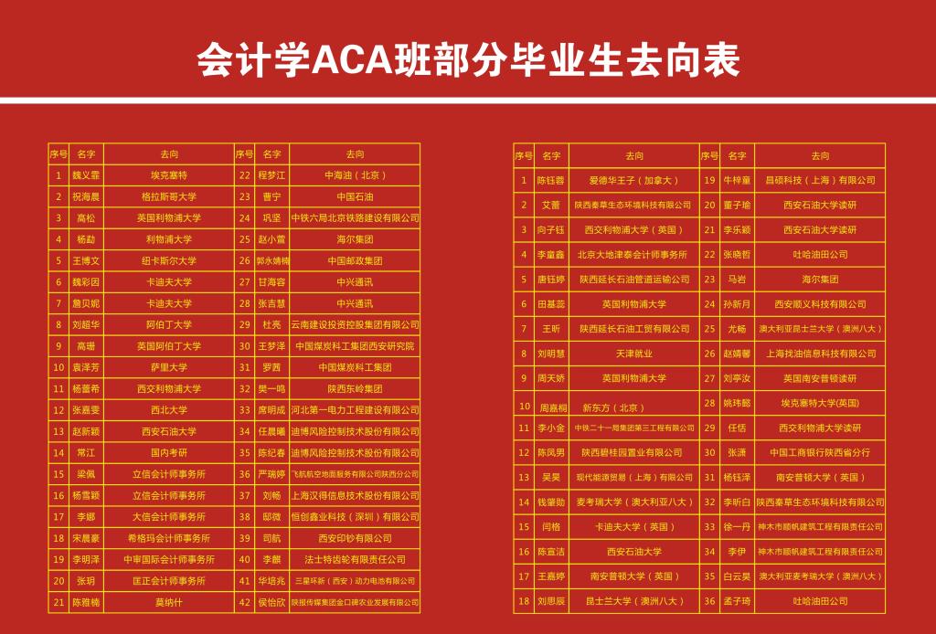 会计学ACA班更详细介绍请见:招生介绍 ACA毕业生去向表